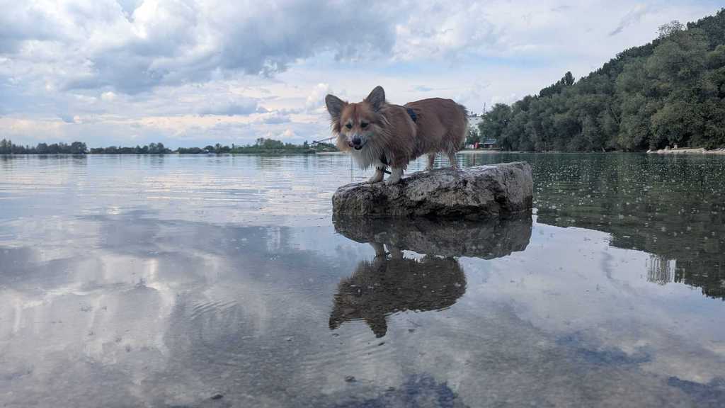 Der kleine Fratz macht der Familie große Freude. Wenn Akku leer, dann schläft er auch als "Plattfuchs". Nach kurzer Zeit hat er auch beide Ohren oben gehabt. Die nächste Pfütze ist doch sehr verlockend.