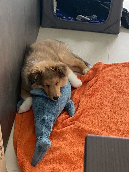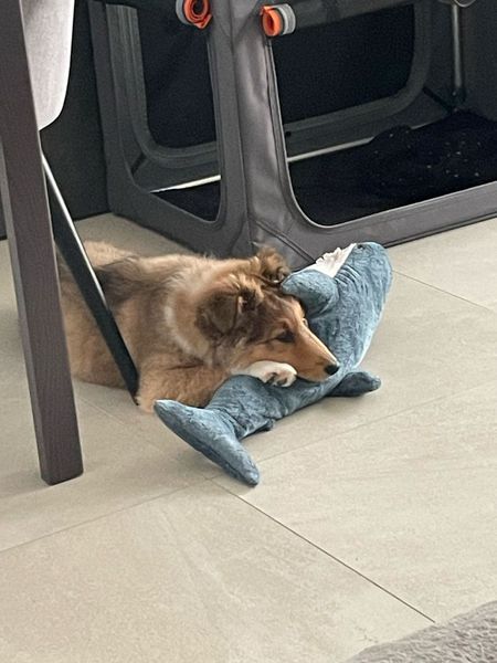 der große Hai ist der neue Kuschelfreund und Kopfkissen