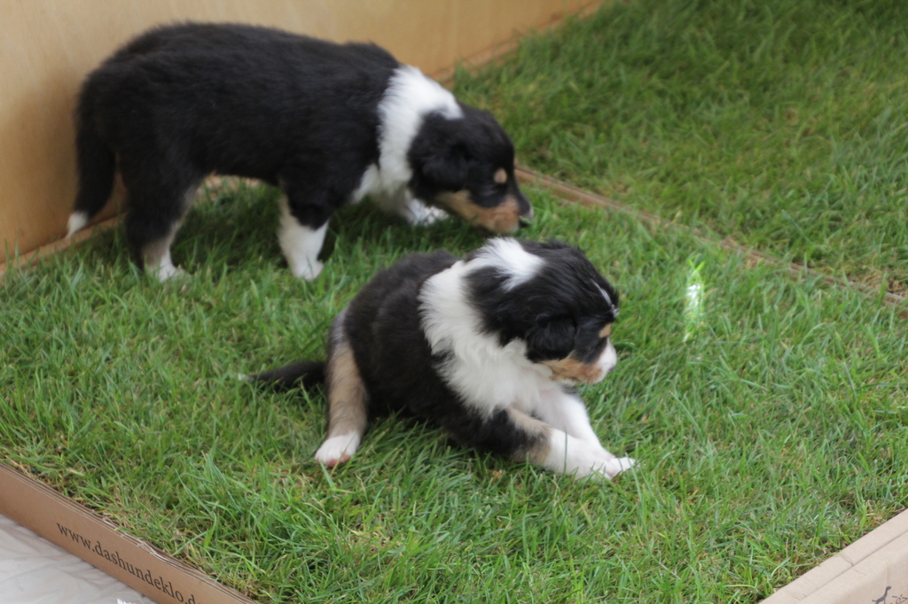 das Carnilo Hundoklo - Grasplatten wurden geliefert und ohne zögern in Beschlag genommen. Die ersten Wässerchen wurde schon dort erledigt.