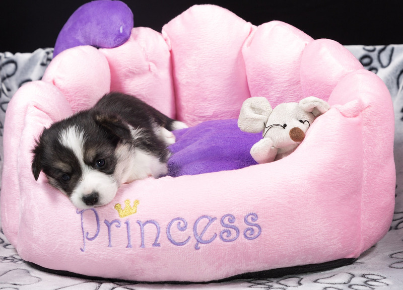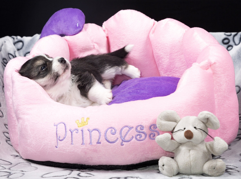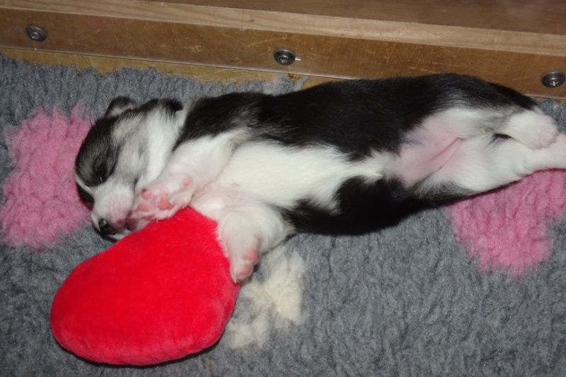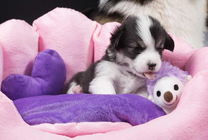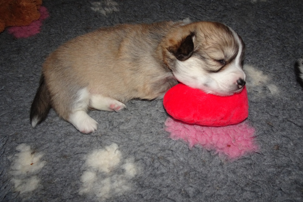 jeder Welpe hat ein Utensil dabei, das der Halsbandfarbe entspricht