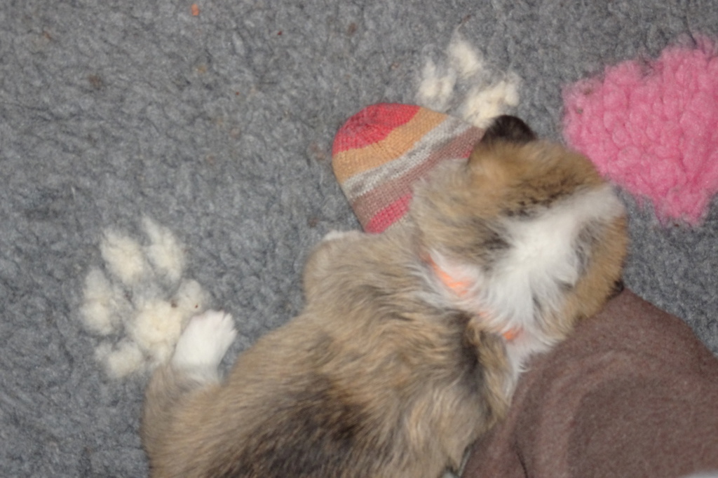 alle haben die Ohren bereits nach vorne, die ersten Versuche, eine feste Nahrung zu sich zu nehmen, die trico Dame nimmt lieber das Futter von Mama